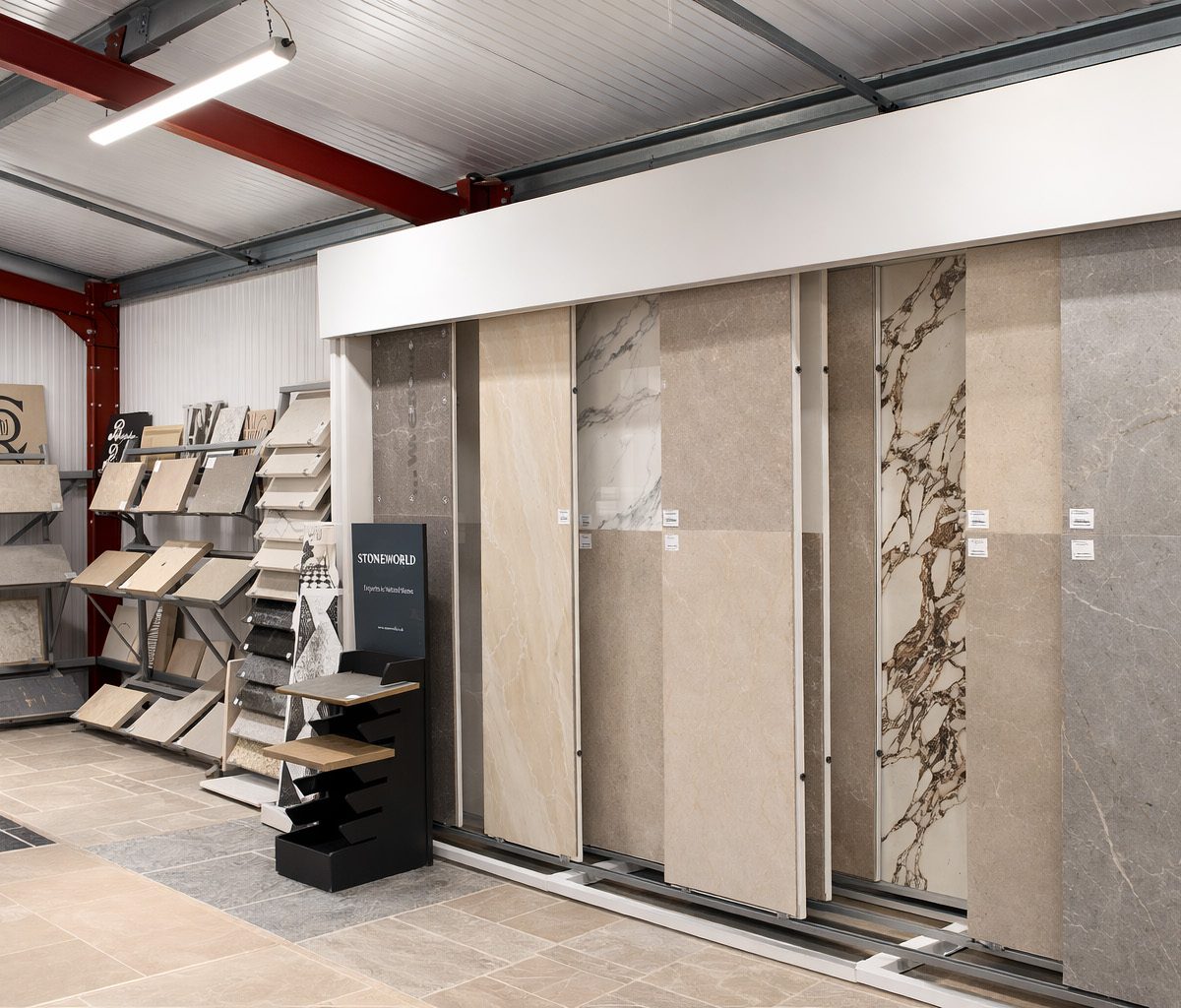 Discover the beauty, texture, and quality of natural stone up close at our Oxfordshire showroom. Featuring both interior and exterior displays—alongside a live masonry workshop.