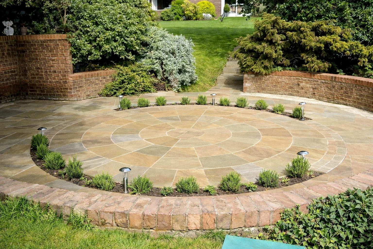 Available in 2.9 and 3.9 metre diameters. Segments and circle are purchased individually. We stock a range of pre cut stone paving circles which can be integrated into landscaping schemes using our other matching sandstone paving  products.