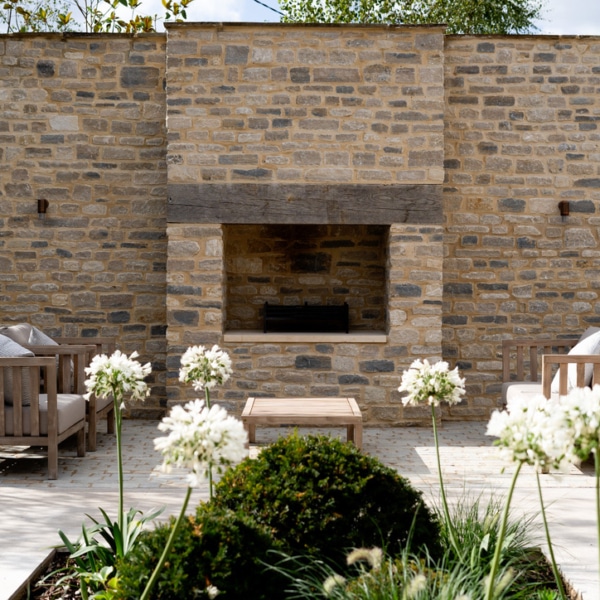 Our masonry workshop created these bespoke copings, showcasing a half bullnosed edge that adds a refined finish to the pool’s edge. These bespoke pieces were created on site in our Oxfordshire masonry workshop and created to the specification of the client, allowing for the smooth, flowing design and neat edges of the pool.